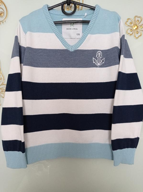 Джемпер в смужку, ідеальний стан. 100% коттон. Довжина - 47 см, ОГ - 37 см, рукав - 44 см, плече - 10 см.