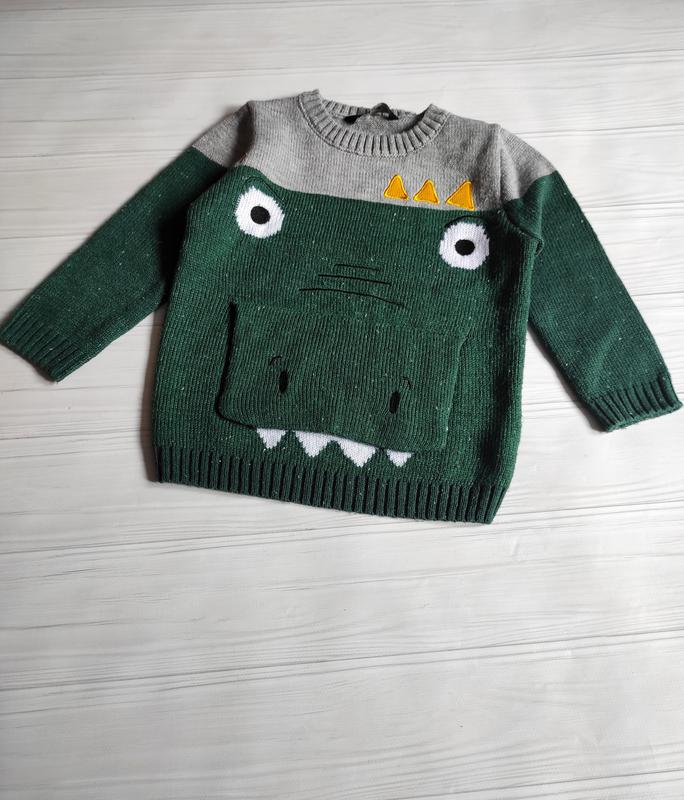 Крутой свитерок на 2-3 года по бирке, немного большемерит как по мне. Длина 43, рукав 34.
