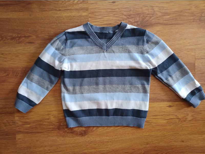 Колір: смужка синій\блакитний\сірий\бежевий Розмір: зріст 98, 2-3 роки Заміри: плечі -28 см, ПОГ -34 см, довжина по спинці -36 см, довжина рукава -32 см Стан: б/в, відмінний Доставка (оплачується покупцем): НП, Укрпошта, Justin Оплата: на картку Приватбанку або Монобанку Вік: не передбачений Дивіться мої інші оголошення)