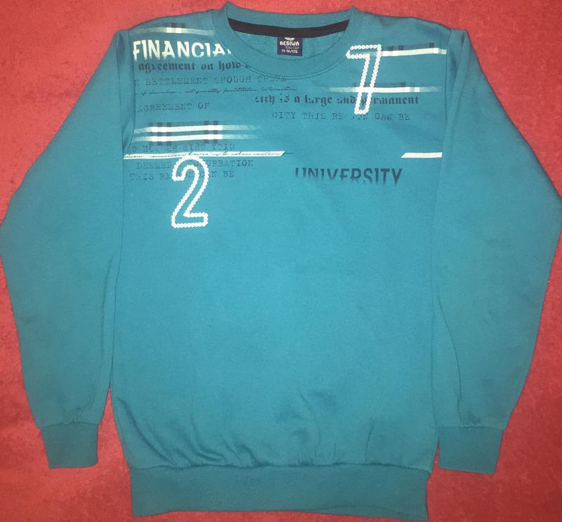 Очень красивая толстовка на мальчика,утеплённая.Смотрится стильно и нарядно.Ориентировочно на 12-13 лет,смотрите замеры:длина по спинке-57;полубхват подмышек-44;плечи-37;длина рукава от плеча-51;плечо-12.Ткань хлопок с начёсом.Состояние идеал.