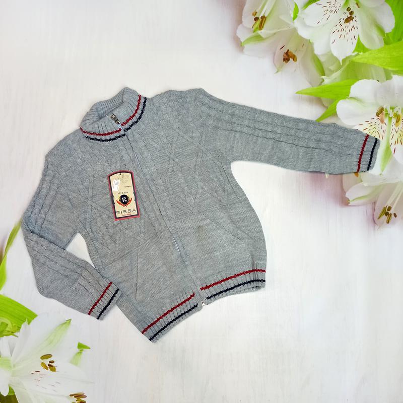 Кофта для мальчика Ткань 30% шерсть 70% акрил Размеры в наличии: 4/5 6/7 Замеры: 4/5 - пог 32 длина 42 рукав 37 6/7 - пог 34 длина 50 рукав 40 8/9 - пог 35 длина 52 рукав 44