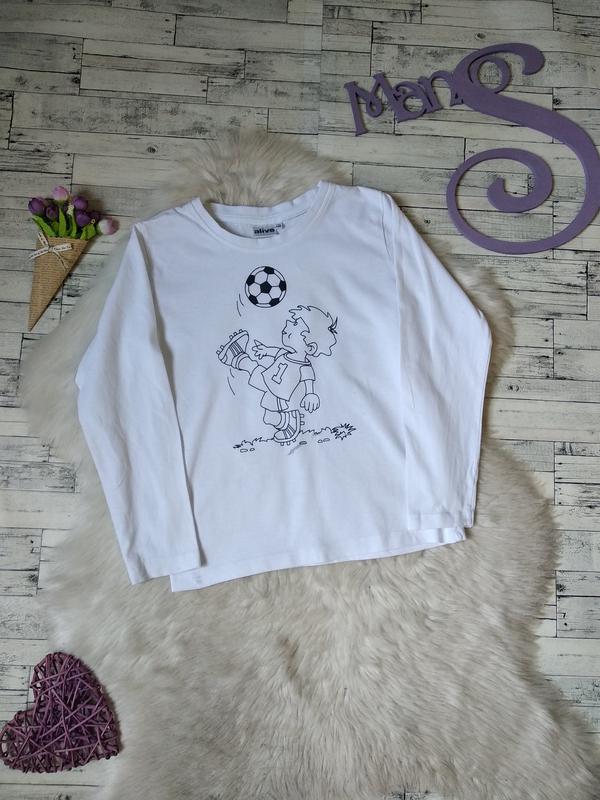 Реглан на мальчика Alive белый с рисунком в хорошем состоянии,есть небольшое пятно - смотрите фото Размер 7-8 лет,рост 122-128 см Замеры: длина 47 см рукав 45 см плечи 31 см ПОГ 36 см ПОТ 35 см цвет белый состав 100% хлопок