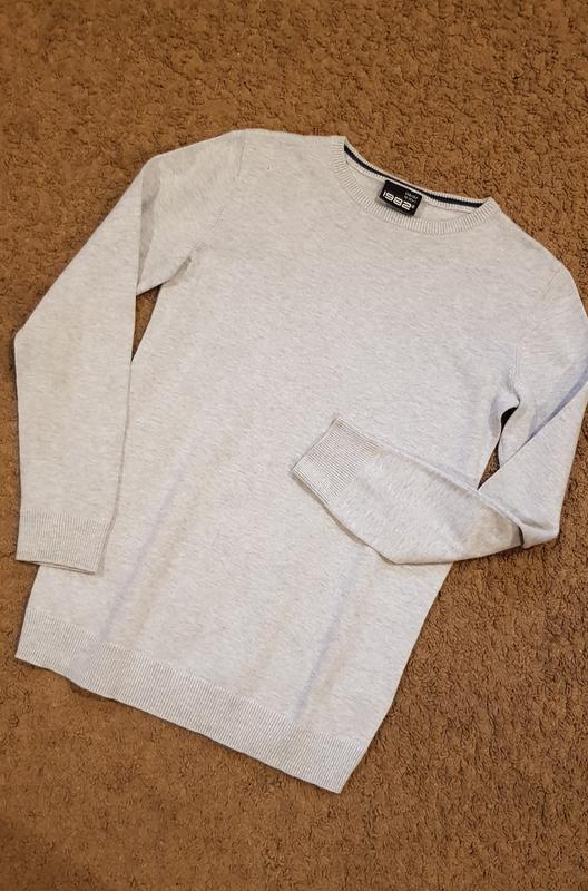 Чудовий светрик 1982 на хлопця сіренького кольору на зріст 146-152 див. В ідеальному стані. Купувала синові в Німеччині. Висота по спині 61 см, ПОГ 40 см, довжина рукава по плечу 56 см ( по внутрішньому шву 43 см). Склад 100% cotton. Made in Bangladesh.