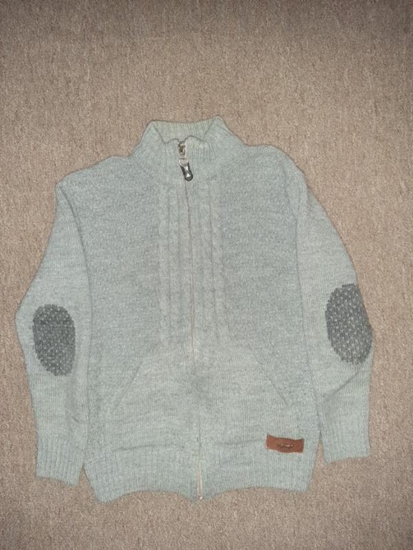 Тёплая кофта на молнии,есть 2 кармана.Замеры : плечи 36,рукав 40,длина 48