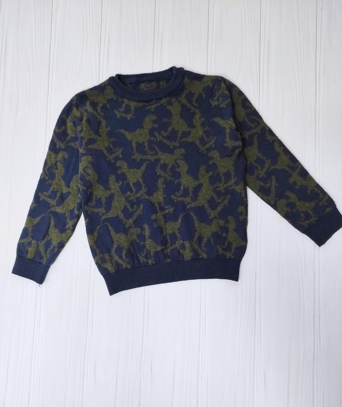 Крутой свитер с дино на 4-5 лет. 100% котто. Длина 40, рукав 35.