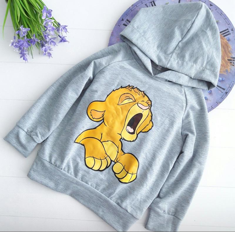 240 грн Худи с зевающим Симбой ⭐Ткань: двухнитка ⭐Цвет: серый ⭐Дополнительно: рисунок накат ⭐ Производитель: Украина р.26 (примерно 104) - длина 40см/ рукав от горловины! 37см- 1шт р.30 (примерно 116) - длина 45см/ рукав от горловины! 42см- 1шт