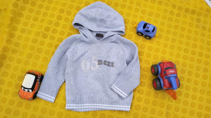 Свитер с капюшоном NEXT, ниточка достаточно плотная хлопковая, по-этому свитерок не кошлатится. Размер указан 86, но большемерит, и на худенького ребенка будет широковат. Замеры: ПОГ 33,5см, длина рукава от горовины 33см, длина по спинке 34см. Состояние очень хорошее.