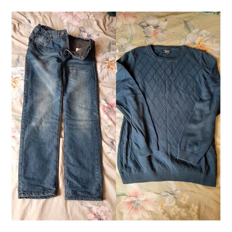 Джинсы на флисе на 146-152 состояние идеальное, свитерок 140-146