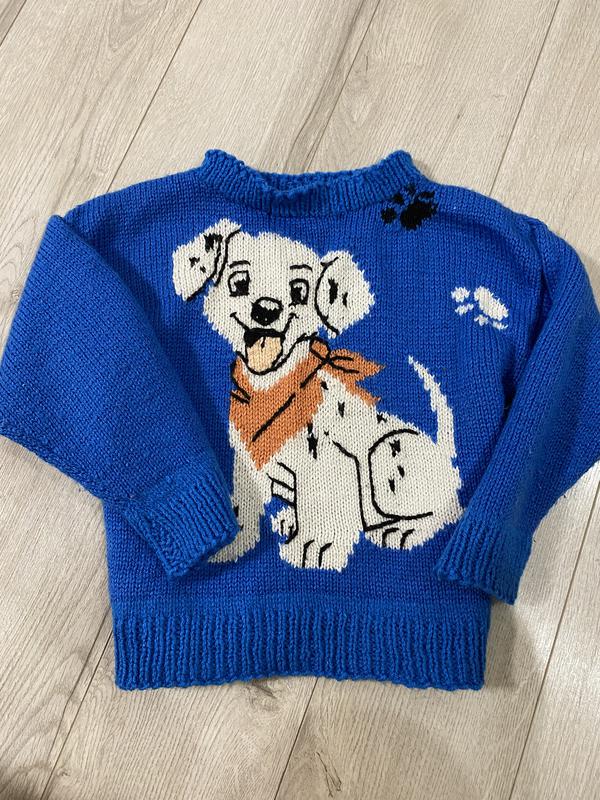 Свитер ручной работы) Свитер не идеален,можно исползеват нити с него,или носить,на усмотрение каждого) Впереди на груды вязаный «далматинец-собачка) Рукава длинные) Воротник круглый)