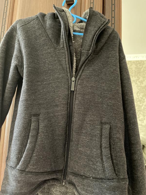 Теплая на молнии кофта на мальчике с капюшоном