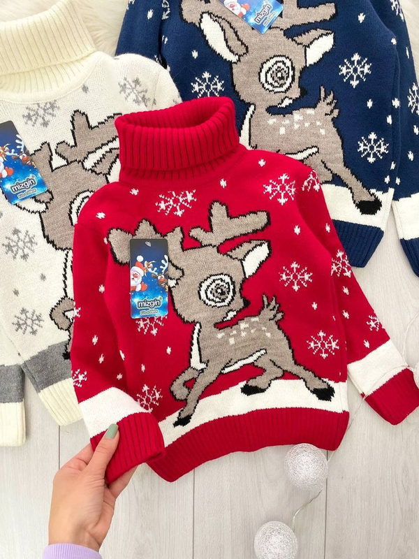 ЕПЛЫЙ СВИТЕР ДЛЯ ДЕТОК -ТКАНЬ: 70% - АКРИЛ, 30% - ШЕРСТЬ -ПРИ ВЫБОРЕ РАЗМЕРА ОРИЕНТИРУЙТЕСЬ ПО ЗАМЕРАМ ЦВЕТ - КРАСНЫЙ 2-3 лет рук 30 см пог 28 см дл 36 см (3 шт) 4-5 лет рук 36 см пог 30 см дл 39 см (1 шт), 7-8 лет рук 43 см пог 34 см дл 47 см (2 шт)