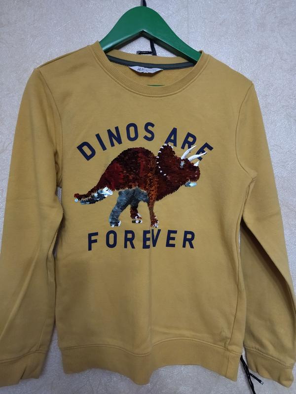 Кофта лонгслив на мальчика с интересным принтом с динозаврами. Отличное качество, супер состояние. Без дефектов и нюансов, нет следов носки. На 8-10 лет. Длина по спине от воротника 53 см Рукав от подмишки 43 см Ширина под подмишками 38 см.