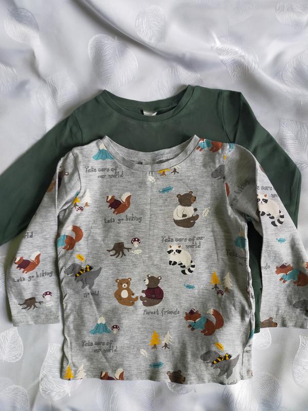 Комплект бавовняних кофтинок. Зелена 100% бавовна, сіра 95% бавовна, 5%віскоза. На бірці розмір 92. Зелена має невелику дирку на рукаві.