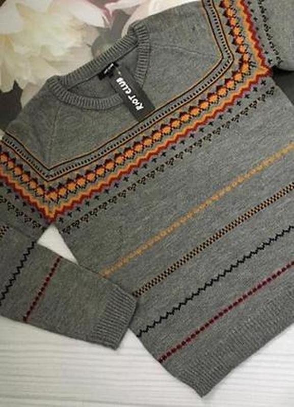 Стильный, модный и очень тёплый, красивый свитер на нальчика на возраст 13-14 лет, известной детской фирмы Riot Club Англия. Свитер серого цвета с рисунком. Ткань мягкая, приятная на ощупь, плотная. При стирке не деформируется. Оригинальный принт , яркий дизайн , удобный крой.Очень красиво сидит по фигуре. Вашему ребенку будет тепло и комфортно в нем.