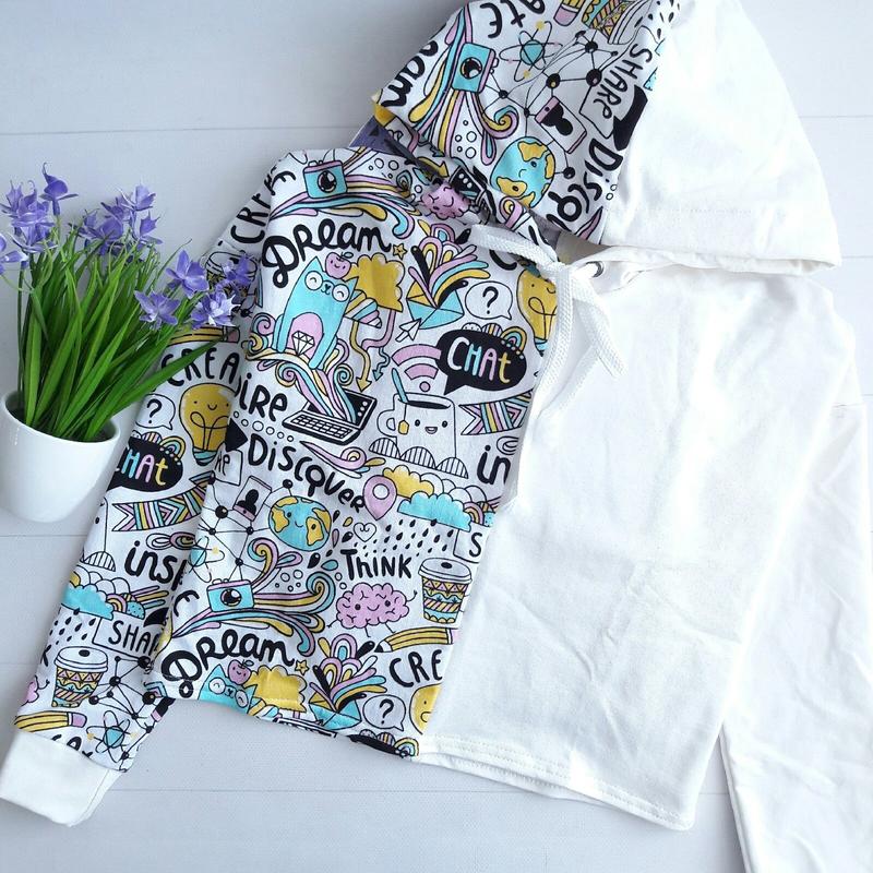 Худи ⭐Ткань : двунить ⭐Цвет: белый, голубой, чёрный, горчичный ⭐Дополнительно: рисунок принт ткани ⭐Производитель Украина ЗАМЕРЫ ДЛИНЫ И РУКАВА ОТ ГОРЛОВИНЫ р.34(примерно 140)-длина 42 см /ПОГ 44 см/рукав 63 см р.36(примерно 146)-длина 44 см /ПОГ 46 см/рукав 64 см р.38(примерно 152)-длина 46 см /ПОГ 47 см/рукав 67 см р.40(примерно 158)-длина 48 см /ПОГ 48 см/рукав 71 см р.42(примерно 164)-длина 50 см /ПОГ 52 см/рукав 72 см