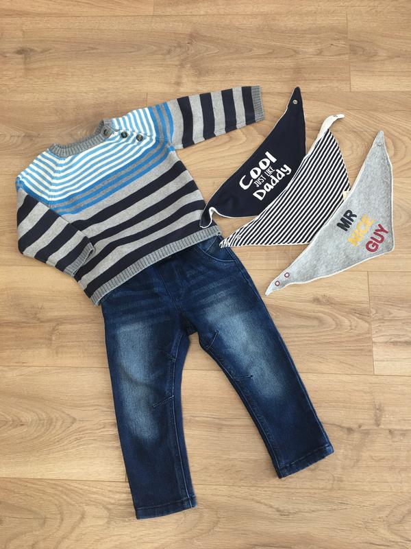 Все в чудовому стані, без дефектів. Гарна якість. Кофтинка 120 грн, джинси 150 грн. Нагрудники 100 грн за всі.