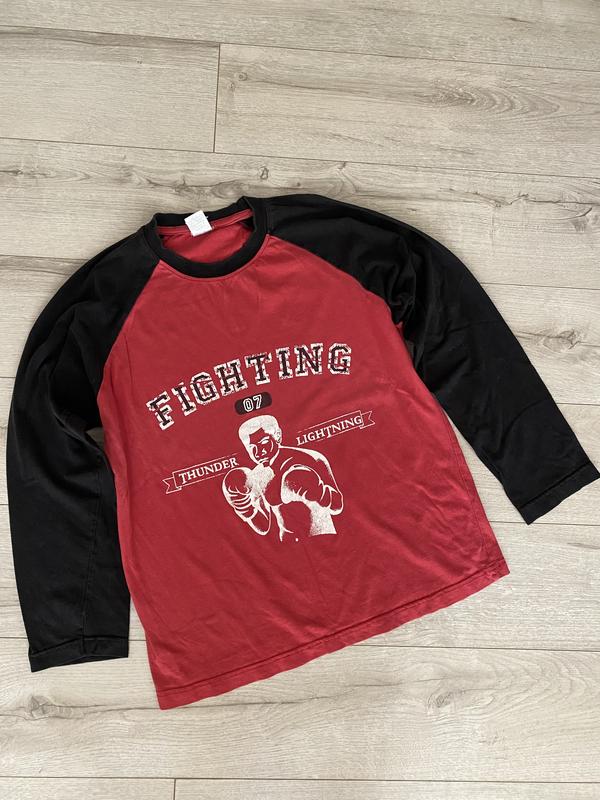 Фото на теле нет Впереди рисунок-боксёра Рукава длинные Подойдёт на 12-14 лет ориентируйтесь по замерам Тянется Плотность средняя Кофта не идеальна выцвела Носить можно по дому или на дачу Длина 60 см) Рукав от воротника 63,4 см) Пог 48 см) Пот 46,8 см) Снизу 46,8 см)