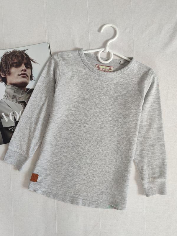 сірий лонгслів від Next для хлопця 4 років на зріст 104 см, ПО грудей 34 см, довжина 45 см, довжина рукава 43 см