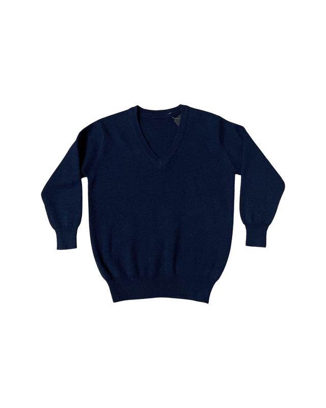 Темно синий свитер с v-образной горловиной. Отлично подойдёт на рост 110 см. . Замеры: Ширина - 40 см. Длина - 49 см. Длина рукава - 36 см. Состав: 50% шерсть, 50% акрил. Новая. Условия отправки и покупки: 🚖Отправка всеми логистическими компаниями 💳Оплата на карту 💯Безопасная оплата Shafa