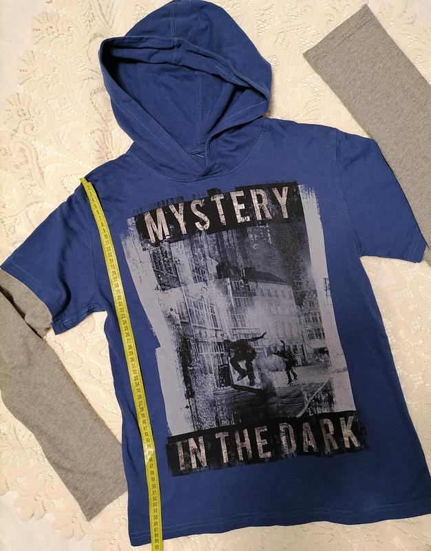 11-12 лет (смотреть замеры), идеальный, плотный футболочный трикотаж. Длина 58 см. Рукав 60см. Плечи 42 см. Обхват груди 88 см.