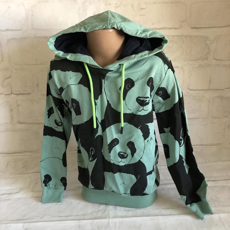 Худи Панда. Капюшон со шнурком. Низ и рукава на манжете. Малюнок принт, спина однотонна. Турция. Размер: 📌7 лет: длина рукава от плеча 44 см, ПОГ 36 см, длина 48 см. Цвет оливка.