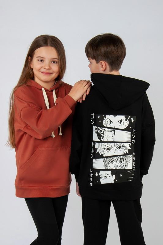 Худі oversize для підлітків виготовлений з однотонного полотна "Футер двонитковий", тканина м'яка та приємна до тіла, на спині розташований малюнок, нанесений методом шовкотрафаретного друку. Худі - це один з найпопулярніших видів толстовок, головні переваги - це вільний крій, капюшон, кишені на кшталт "Кенгуру", і додаткові шнурки для стяжки. Така річ є універсальною, може комбінуватися з будь-якими брюками, джинсами – виглядає стильно та є обов'язковим атрибутом у гардеробі незалежно від статі чи віку. Полотно: футер двонитковий. Склад: 80% бавовна, 17% поліестер, 3% еластан Модель: 04-2748-95Н