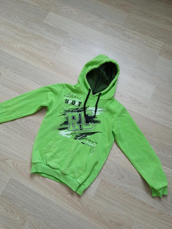 Худи с капюшоном в хорошем состоянии. С манжетами, чуточку начес. Длина 52 см, рукав от плеча 47 см.
