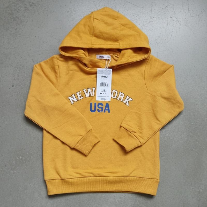 Детское худи "NEW YORK USA" фирмы Sinsay - iдеальный Выбор для Активных детей. Эта яркая и удобная худи станет любимой вещью в гардеробе вашего ребенка! Состояние новое, не пользовались. Размер 110 сm, может быть дольше. Без утепления. Замеры: длина -38 см, полуобхват подмышками - 37см, длина рукава от горловины - 44 см. Цена 99 грн