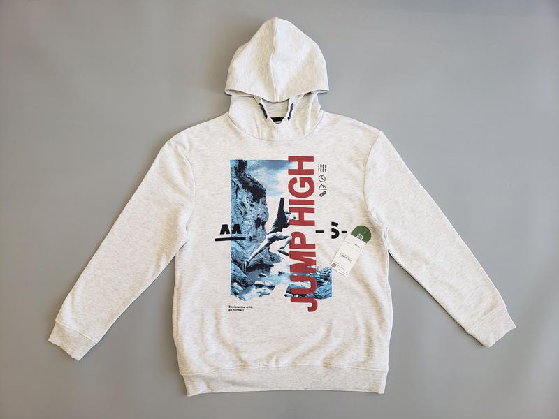 Стильная и качественная кофта худи с капюшоном. Внутри утеплена флисом. Рисунок выбит. Хорошая и качественная вещь. Модель универсальна - на парня и на девочку. Размер подростковый, подойдет и на взрослого. 14+ лет (182 см) ПОГ-57, рукав от шва-60,5, от плеча-76, длина-72,5 Цена-750 грн.