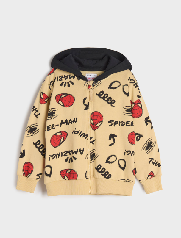 Худі Spiderman для хлопчика Marvel на зріст 134/140 см. Заміри: довжина - 54 см, обхват грудей - 86 см, плечі - 44 см, довжина рукава від плечового шва - 45 см. Застібається на блискавку, довгі рукави з манжетами у рубчик, з принтом Spiderman. Склад: 60% бавовна, 40% поліестер. В гарному стані, що видно на фото.