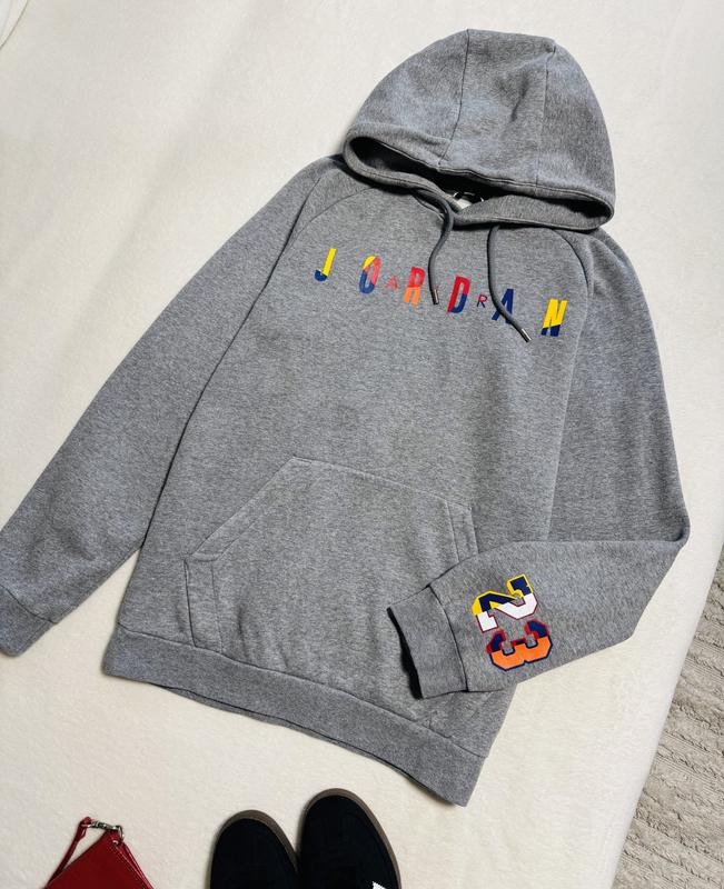 Худі сірого кольору від Jordan Розмір S підійде на підлітка По грудей 55 см Рукав від шиї 77 см Довжина 67 см 80% котон, 20 полістер
