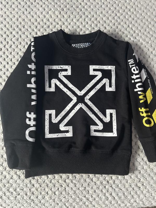 Стильний світшот off white , в гарному стані. На 2 рочки. Розмір 92 98 розмір можливо 86 розмір але буде оверсайз