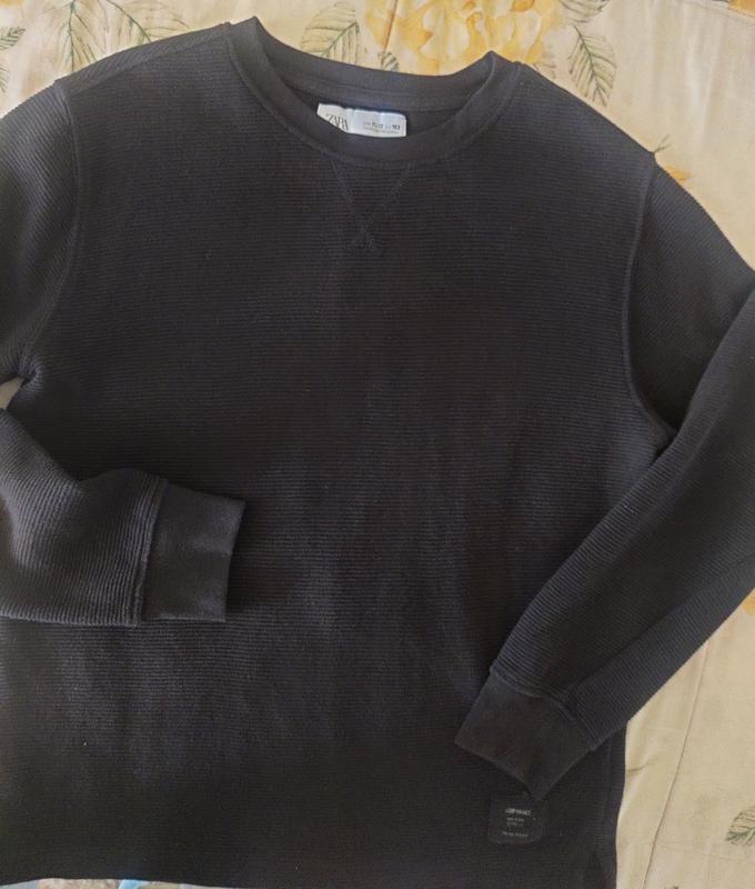Коттоновый реглан Zara в мелкий рубчик в идеальном состоянии, черного цвета (как на фото 3). ПОГ-45 см., длина -56 см., рукав-52-53 см.