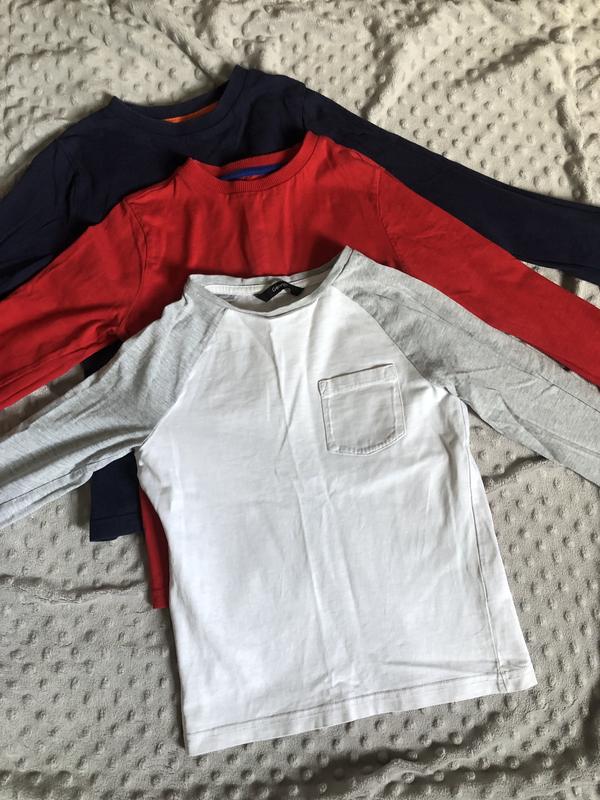 Стан чудовий, червоний та темно-синій реглан F&F, біло-сірий George. Вік 5-6 років Зріст 110-116 см Заміри: Реглани червоний та темно-синій F&F Рукав від плеча 38 см Рукав від горловини 45 см Довжина від плеча і до низу 43 см Півобхват під руками 34 см Реглан George Рукав від горловини 46 см Довжина від плеча і до низу 42,5 см Півобхват під руками 34 см Відправка новою поштою щодня.