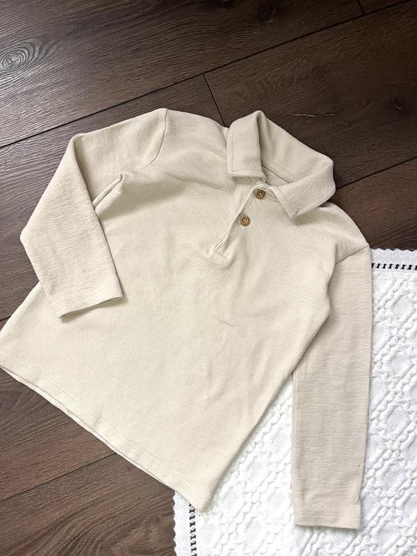 Молочна кремова бежева кофта лонгслів поло довгий рукав з коміром з ґудзиками для хлопчика...
