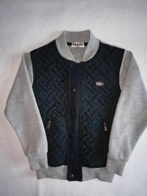 Кофта-бомбер-116см-в хорошем состоянии,мы носили в школу. Длина по спинке-45см,плечи-31см,рукав от плеча-43см,под мышками-35см. Спрашивайте,отвечу на любые вопросы.