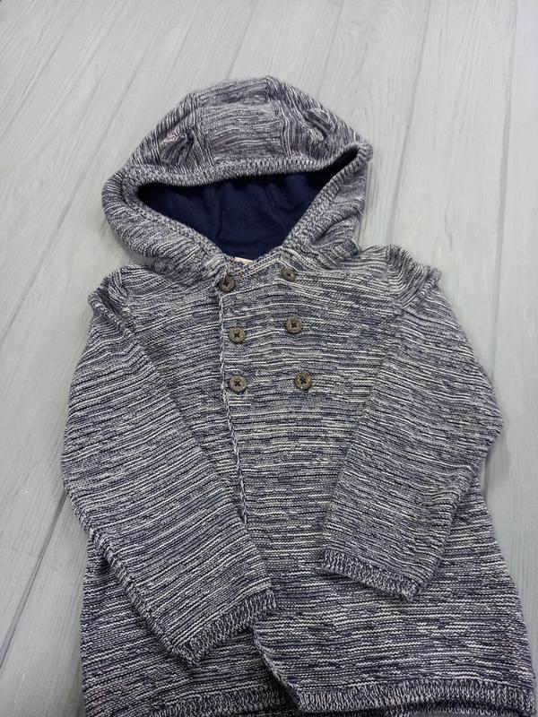 В'язана кофта з капюшоном на хлопчика, 86-92, 12-24 міс, (с)