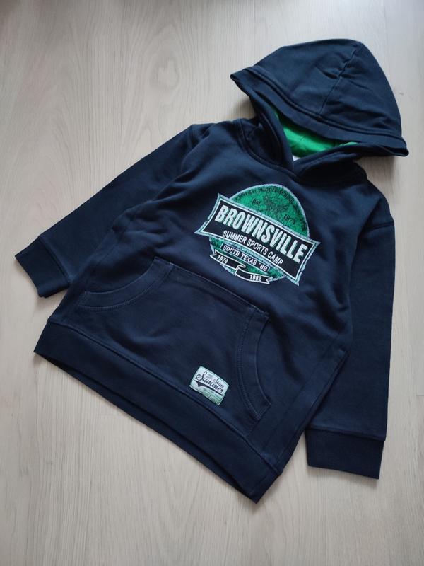 Худі в ідеальному стані, близькому до нового. Розмір 98/104, заміри: довжина 40 см, ПОГ 36 см, плечі 30 см, рукав від плечового шва 30 см, рукав від горловини 37 см.