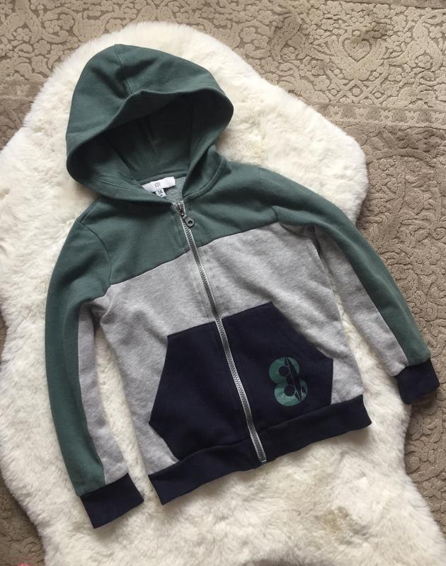 Кофта на замку французького бренду La Redoute . Тепленька на флісовій підкладці з технологією OEKO-TEX. Виготовлена з органічного котону. Без дефектів На вік по біркі 7 років Заміри: Довжина 44 см Ширина (замір з-під пахв) - 38 см Плечі 28 см Рукав (без плечей)- зовнішній шов 44,5 см; внутрішній шов 32,5 см