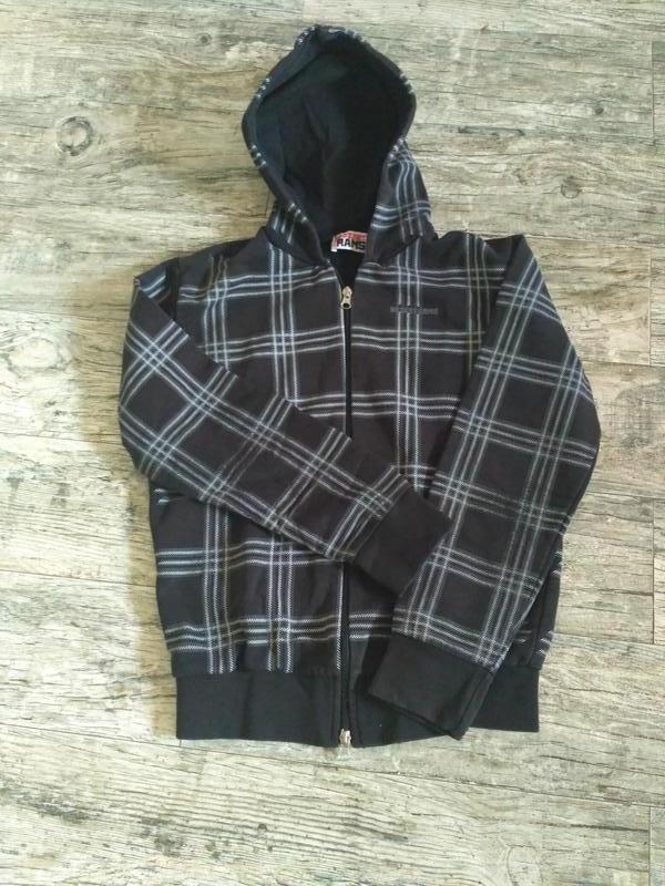 Поатична кофта з капюшоном для хлопчика 152-158 см. Розмір по бирці 158 см. Довжина — 58 см рукав-55 см, напівГ-49 см. Стан дуже гарний. Трохи потертість на рукавах, але в носінні непомітно. На фото видно. П'ятен і порізів немає. Манжеті не рукавах і поясі не розтягнуті. Склад: 100% cotton Доставка: Відправлю після 100% оплати на картку. Новая Пошта УП. Без повернення й обміну.