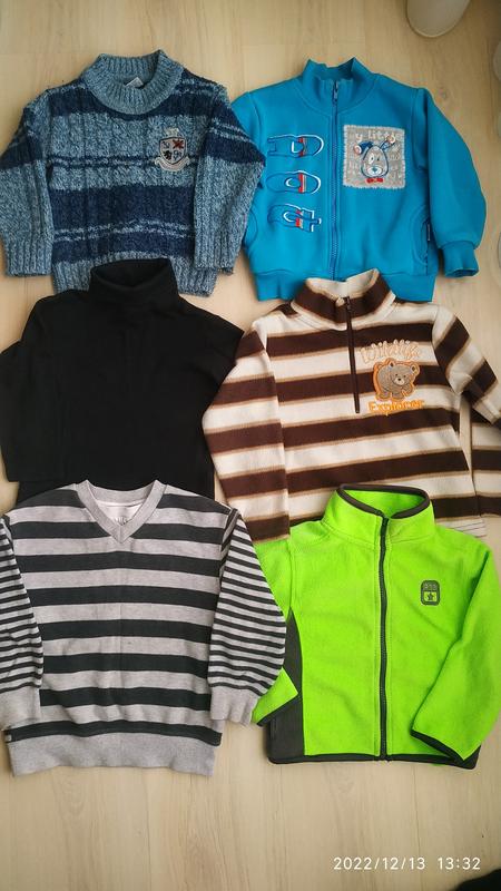 Ліва синя 70 грн. - 1-3 роки. Тепла. Шерсть. Права синя 50 грн. Трикотаж, зсередини байка. ГАББІ Україна. Чорний трикотажний гольф - 50 грн. Геть новий. Коричнева полосата фліска - 50 грн. Салатова фліска- 60 грн. Полосатий светрик NEXT- 50 грн. Жилетка на байці- 60 грн.