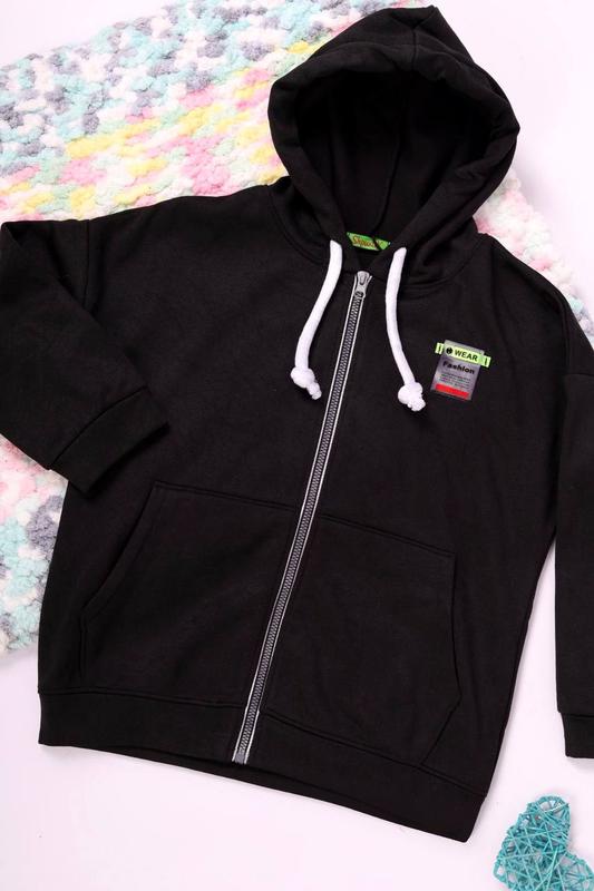 Теплые подростковые худи Турция С капюшоном. Рукав и внизу на манжете, по бокам карманы. Застегивается на молнию. Цвет: черный🖤 🏷Материал: трикотаж на флисе (90% cotton, 10%elastane) 🏷 Размеры: 134 158❌️ Полномерные, даже болеемерные