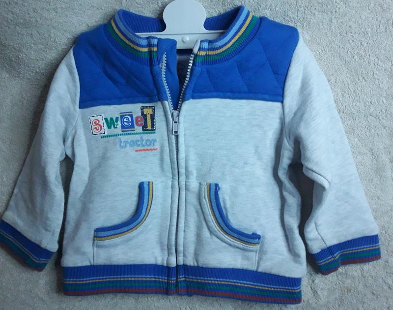 Замечательный бомбер фирмы Baby club для маленького модника. Склад 95% бавовна, 5% еластан. В середине легкое утепление. Полномерный. размер 68, но будет на дольше. Состояние очень хорошее. Можно носить как самостоятельную вещь осенью или весной, или же под комбинезон или куртку зимой. также можно надевать летом прохладными вечерами. Сделаю дополнительные замеры при необходимости.