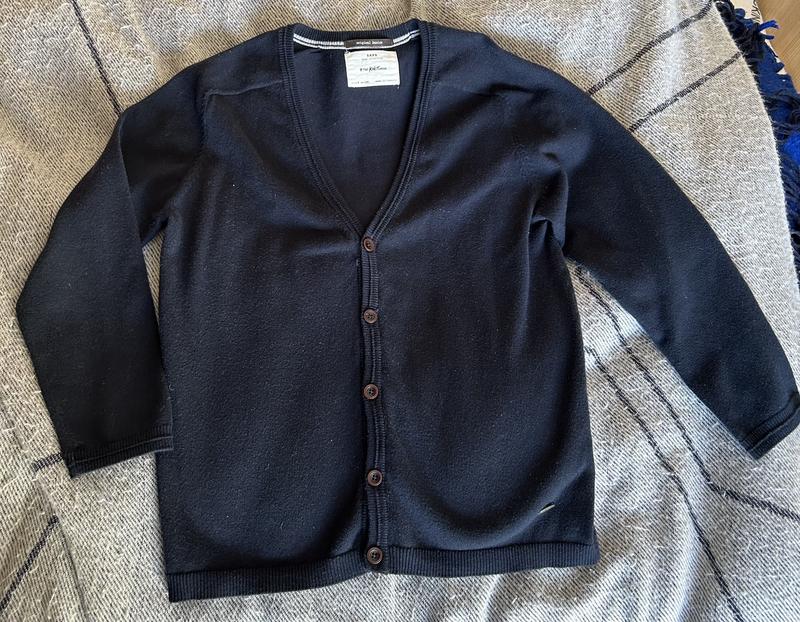 Кофта Zara на мальчика, темно синий цвет, на 128 см, состояние отличный, пару раз одета. Бавовна. Красиво под белую рубашку в школу. Длина 50 см, рукав от горловины 51 см, ширина 38см.