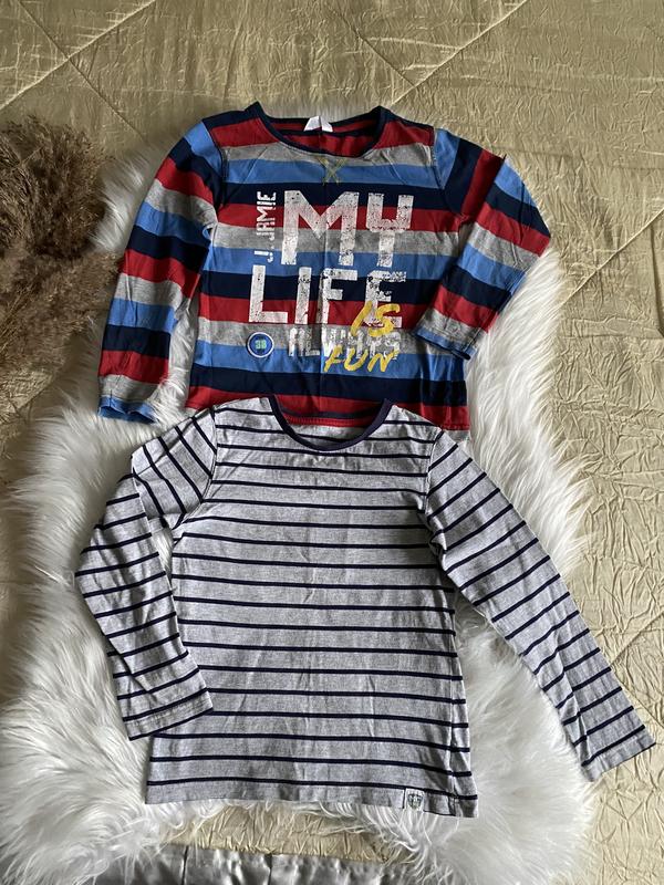 Фото на тілі нема) Довжина кофти у кольорову смужку) Довжина 47 см) Плечі 32 см) Рукав 43 см) Пот 36 см) Пот 35 см) Знизу 37,6 см) Кофта сіра у синю смужку Довжина 46,5 см) Плечі 29 см) Рукав 42 ,5 см) Пог 36 см) Пот 34 см) Знизу 36,2 см) Підійде на 4-6 років оріентуйтесь по замірам ) Сліди носіння незначні ,на рукаві плямка і мікрокатишки на кольоровій на фото вказано у ціні враховано,продається так як є без притензій і без повернення)