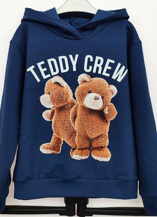 Джемпер подростковый с длинным рукавом, есть капюшон, низ и рукава с манжетами, спереди украшен трансфером, подойдет для деток от 6-7 лет до 11-12 лет.