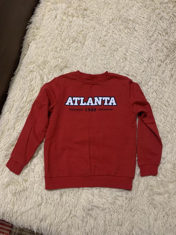 Кофта для мальчика красного цвета с надписью из плотного трикотажа, куплена заграном, замеры длина 47 см, плечи 33 см, рукав 44