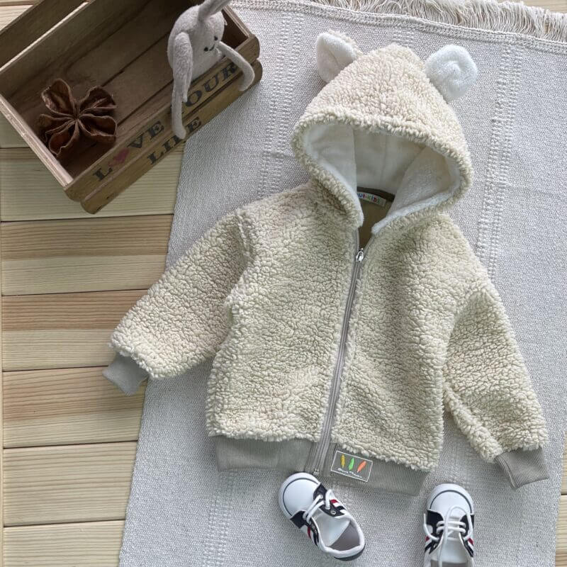 Она невероятная! Кофта з “баранця”! На молнии, манжеты – трикотажные! В капюшоне – мех – травка! Ушки – отлично держат форму! Размеры: 92р – рукав 27, длина 34 98р – 30/37 104р – 32/40 110р – 33/41 116р – 37/45