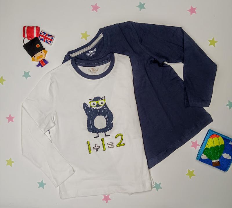 Набор лонгслив хлопковый реглан Kuniboo. В комплекте две кофточки из мягкого хлопка. Одна базовая, синего цвета, без рисунка. Вторая белая с милым монстриком. Размер указан на рост 110/116. Ориентируйтесь на замеры! Замеры: синий: длина – 44, плечи – 30, ПОГ – 35, по низу – 36, рукав – 42. белый: длина – 43, плечи – 30, ПОГ– 36, по низу – 35, рукав – 41. Состав: 100% хлопок (органический, био) 100% предоплата, доставка НП, Укрпочта (+10,00 грн к стоимости на упаковку).