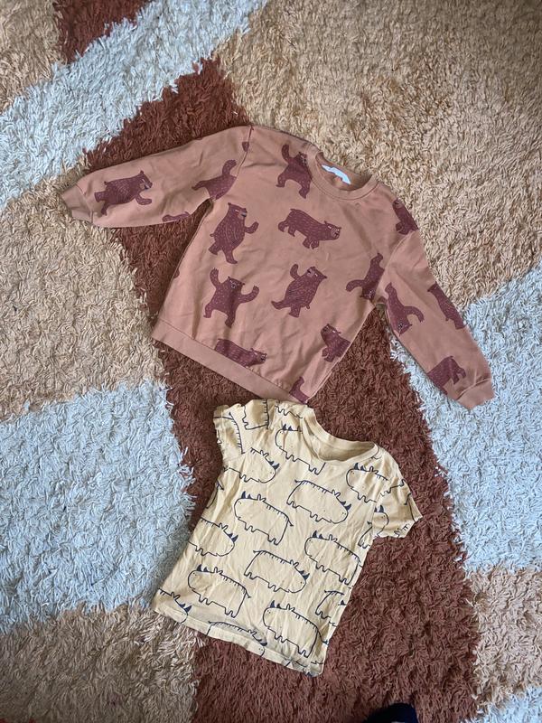Кофта + подарок футболка..стан хорош без нюансов..но для двора..бо потерян цвет...качество супер двунитка размер 110/116 Замеры Длина 45 Ширина 35 Рукав от шеи 45 Комплектом